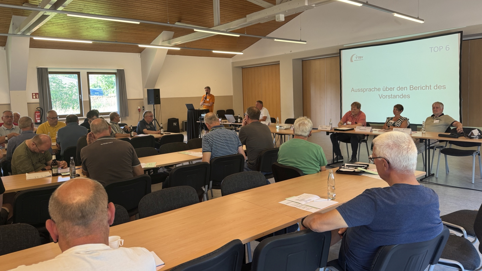 In der anschließenden Aussprache zu den Berichten des Vorstands erläuterte Matthias Harre etwas ausführlicher die bevorstehenden Änderungen durch den ab dem Schuljahr 26/27 bestehdenden Rechtsanspruch der Grundschüler auf Ganztagsbetreuung. Hier steht der bisherige Vereinsport dieser Altergrupe vor großen Veränderungen, denen die Vereine im Rahmen von Kopperationen mit den zukünftigen Trägern der Ganztagsangebote begegnen können. Desweiteren informierte Matthias die Delegierten darüber, dass der Bezirksverband Braunschweig im Rahmen eines außerordentlichen Bezirkstages offiziell aufgelöst wurde. Die wenigen verbleibenden Aufgaben werden wie bereits in den vergangenen 10 Jahren durch die Regions- und Kreisverbände übernommen und organisatorisch wird es zukünftig eine „ständige Konferenz“ dieser Verbände unter der Leitung des TTVN geben.