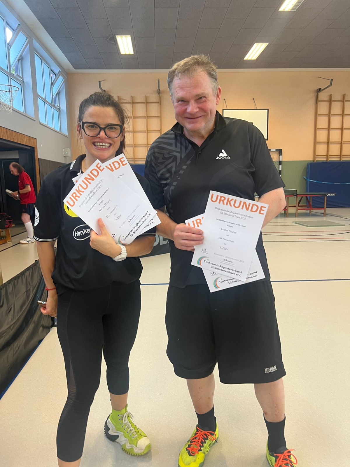 Am 20. Juni 2025 hat im DGH Scharzfeld der ordentliche Regionsverbandstag stattgefunden. In Abwesenheit unseres scheidenden Vorsitzenden Achim Pförtner übenahm unser stellvertretender Vorsitzender Organisation die Leitung des RVT und konnte 120 Stimmberechtigte sowie die Ehrenmitglieder Joachim Bremer und Jörg Schlappig begrüßen. Nach dem Grußwort von Robert Koch, Abteilungsleiter vom gastgebenden TV Pöhlde, folgten die Ehrungen der Gruppen- und Pokalsieger der Regionsebene sowie im Auftrag des TTVN der 1. Herrenmannschaft der SG Rhume für die Meisterschaft in der Landesliga Braunschweig.