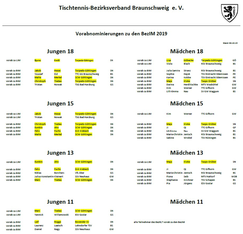 | Jungen 15 Einzel | bis 3000 | Südniedersachsen | 26.10.2019 12:00 Uhr | ja |