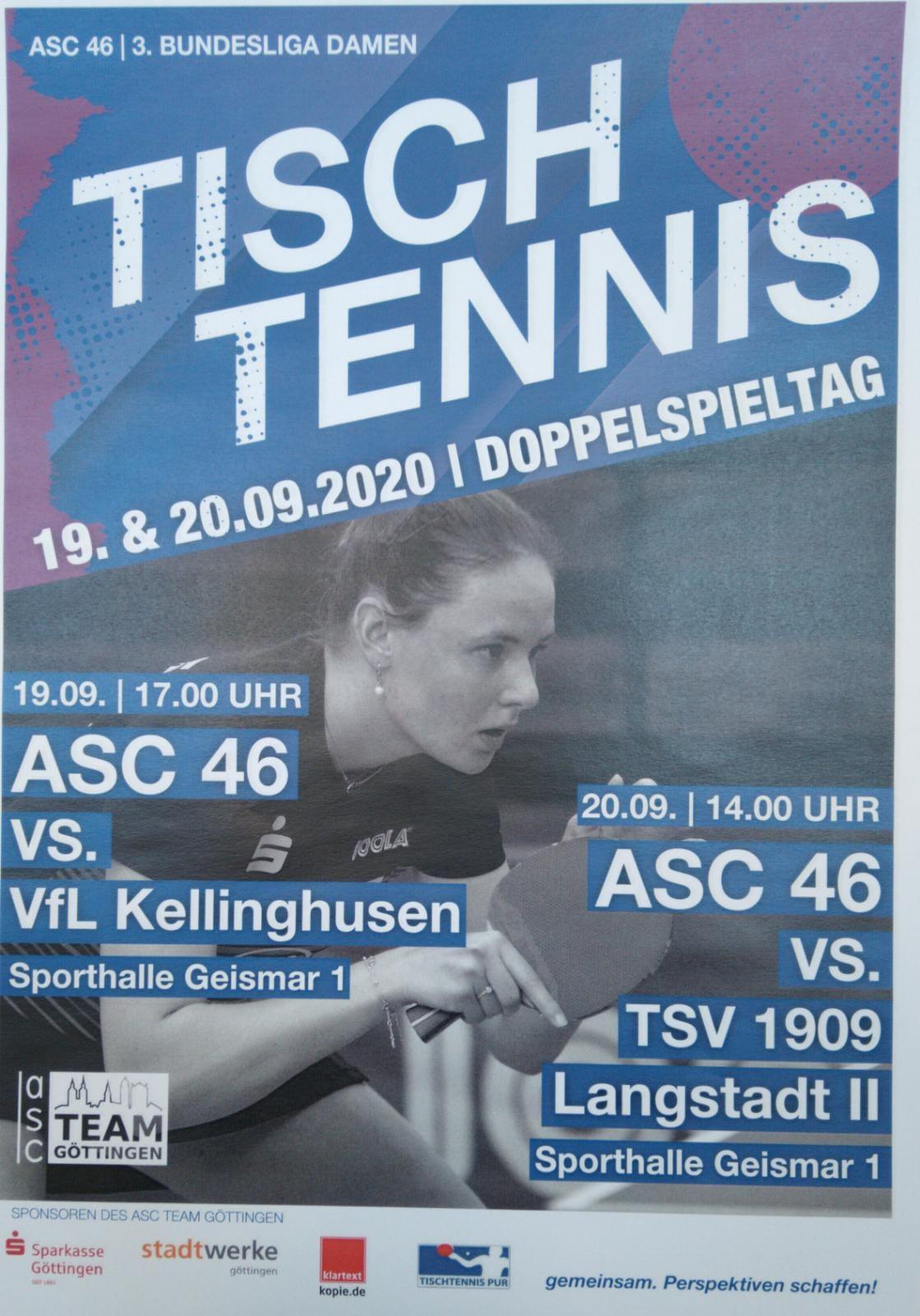 Zum Auftakt der 3. Bundesliga starten die ASC-Damen mit je einem Spiel am 19. und 20. September 2020 in der heimischen Geismar 1 Sporthalle in die Saison. Zeitgleich treten dort auch die Oberliga Herren des ASC Göttingen an die Tische.