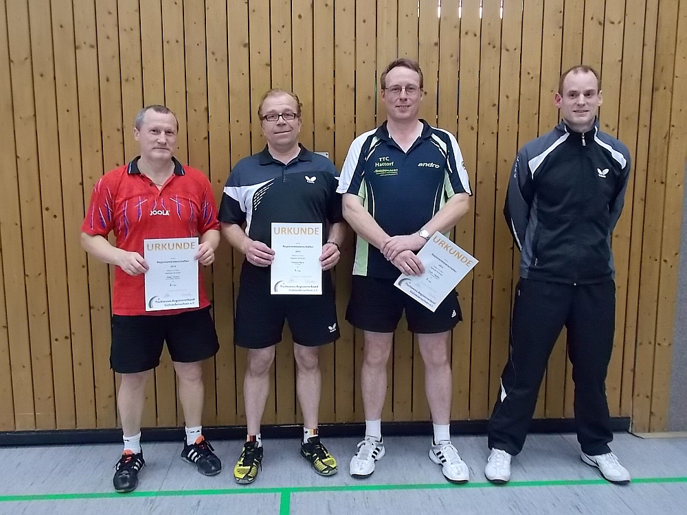 Am 18. Oktober 2014 wurden die ersten Seniorenmeisterschaften des Tischtennis-Regionsverbandes Südniedersachsen in der Nicolai-Turnhalle in Herzberg ausgetragen. Nach einer kurzen Begrüßung durch den Regionsverband und den TTC Herzberg begannen die 14 Teilnehmer im Modus „Jeder gegen Jeden" in den Altersklassen Ü40, Ü50, Ü60 und Ü80 mit ihren Gruppenspielen. Es wurde um jeden Punkt und Satz gekämpft und es gab spannenden und hochklassigen Sport zu sehen.